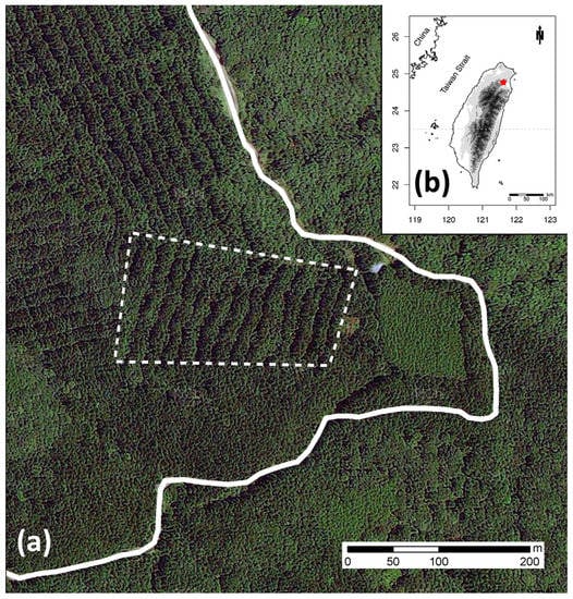 - Cheng, C.-H.; Hung, C.-Y.; Chen, C.-P.; Pei, C.-W. Biomass carbon accumulation in aging Japanese cedar plantations in Xitou, central Taiwan. Bot. Stud. 2013, 54, 1–9. [Google Scholar] [CrossRef]