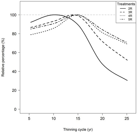 - Brodie, J.D.; Kao, C. Optimizing thinning in Douglas-fir with three-descriptor dynamic programming to account for accelerated diameter growth. For. Sci. 1979, 25, 665–672. [Google Scholar]