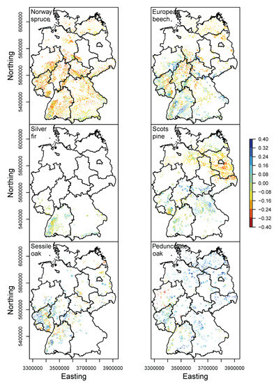 SDMs were calculated for the second and third NFI only, because Germany’s Old Federal States were not included in the first NFI. Both periods were used for the growth models.