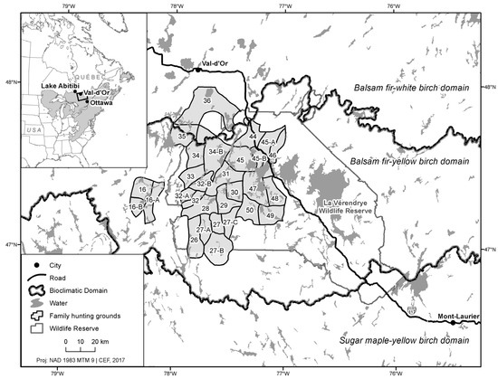- Asselin, M. L'Abitibi-Témiscamingue: Trois sous-région. In Histoire de l'Abitibi-Témiscamingue; Vincent, O., Ed.; Institut québécois de recherche sur la culture: Quebec City, QC, Canada, 1995; pp. 21–65. [Google Scholar]