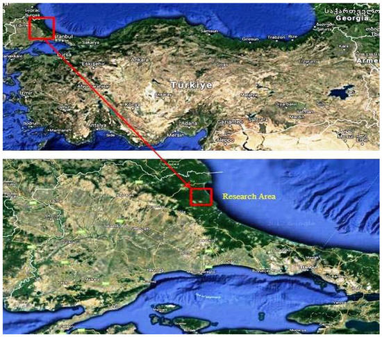 This study was conducted in the Demirköy-İğneada region of Kırklareli province in northwestern Turkey (Figure 1). The mean annual precipitation is 837 mm in Demirköy and 867 mm in İğneada. The mean annual temperature is listed as 12 °C in Demirköy and 13 °C in İğneada. The prevailing wind directions are northeast and southwest [30].