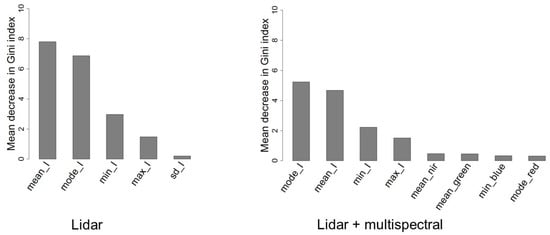 Figure 5). The difference between the lidar and the combined lidar–multispectral imagery classification was not significant (Z = 0.39). This may be explained by the absence of standardization of the multispectral image intensities or by the relatively small size of the sample dataset. With a larger dataset, the contribution of the multispectral imagery would likely have been more substantial. Our finding, nevertheless, confirms that lidar is an effective classification tool for forest attributes and can be combined with multispectral imagery [