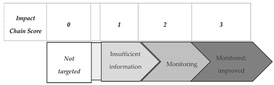 We tracked the progress towards long-term goals using a four-part scoring framework, which acknowledges that all projects are at different stages along a general pathway of change that would be expected on the way to achieving an ultimate desired output. Articulating each step within a longer-term process of change allows projects’ progress to be assessed. A score of 0–3 is given to each project for each of the 17 Global Goals, where 0 = not targeted; 1 = insufficient information; 2 = monitoring variable(s) have been explicitly identified, and/or monitoring is occurring (results may be too soon to see); 3 = outcome monitored and improvement reported (Figure 1). This score system reflects other studies’ hypotheses that early outcomes are often strong predictors of projects’ long-term impacts [30]. It is these outcomes that are more likely to be picked up upon project verification and included in project implementation reports. Similar impact assessment frameworks have been utilized successfully elsewhere [31,32]. The method was considered an appropriate approach here, as it allows REDD+ projects’ progress to be systematically and quantitatively assessed in relation to the SDG targets initially identified in the project design documents.