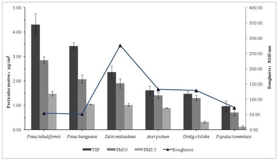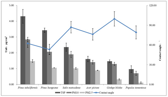 | Plant Species | TSP | PM10 | PM10/TSP | PM2.5 | PM2.5/PM10 |