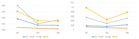 Variances of measured reference data separated by tree species. Perimeter is shown on the left and diameter on the right (cm) (Aa: Abies alba Mill.; Fs: Fagus sylvatica L.; Qp: Quercus petraea (Matt.) Liebl.; Pa: Picea abies (L.) H. Karst.).