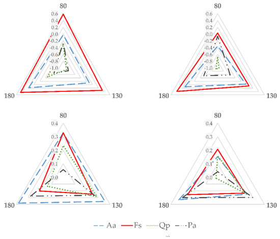 Tree species average error (cm) comparison of (first row) estimated perimeter and (second row) diameter using (first column) non-fisheye and (second column fisheye lens) (Aa: Abies alba Mill.; Fs: Fagus sylvatica L.; Qp: Quercus petraea (Matt.) Liebl.; Pa: Picea abies (L.) H. Karst.).