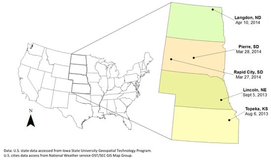 We conducted five focus groups total, one per state in Kansas, Nebraska, and North Dakota, and two in South Dakota (Figure 1) between 6 August 2013 and 10 April 2014. We initially planned for two focus groups per state as a way to capture a high degree of emergent themes [28], but logistical complications made this goal untenable. Considering the lack of farmer-oriented studies from this region we believe that our data is informative, nevertheless. Eligible participants included individuals who reported responsibility for on-farm decision making for their crop or livestock production system. Those livestock producers who only managed feedlots or confinements were not considered eligible for participation in the focus groups. Focus group participants in the different states were selected through nominations from local and state resource professionals (e.g., associated with the USDA Natural Resource Conservation Service; district-level State Foresters, etc.) and agricultural NGOs, as well as through snowball sampling. An incentive payment of $100 per individual was offered for participation in a focus group. Participants were provided advance information regarding project goals and anticipated topics of exploration, were contacted by a researcher to discuss their farm operation and information regarding focus group participation, and were additionally provided a link via email with further information regarding the larger research goals associated with the project in which this study is embedded. Participants were notified of the voluntary nature of participation in the focus groups during initial contact through a confirmation letter, and prior to the beginning of the focus group discussion. Consent to participate in the research project was implied by each participants’ presence at the voluntary focus group. Focus group locations in each state were selected to accommodate the highest number of interested participants. Iowa State University’s Institutional Review Board approved our research approach and data management protocols prior to data collection.