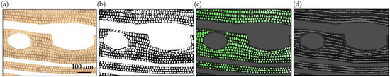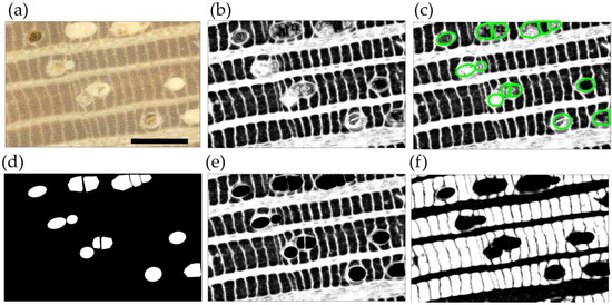 - Kennel, P.; Subsol, G.; Guéroult, M.; Borianne, P. Automatic identification of cell files in light microscopic images of conifer wood. In Proceedings of the 2010 2nd International Conference on Image Processing Theory, Tools and Applications, Paris, France, 7–10 July 2010; pp. 98–103. [Google Scholar] [CrossRef]