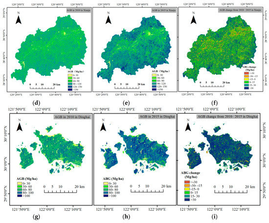 3.3. Bitemporal Distribution and Change of Aboveground Biomass
