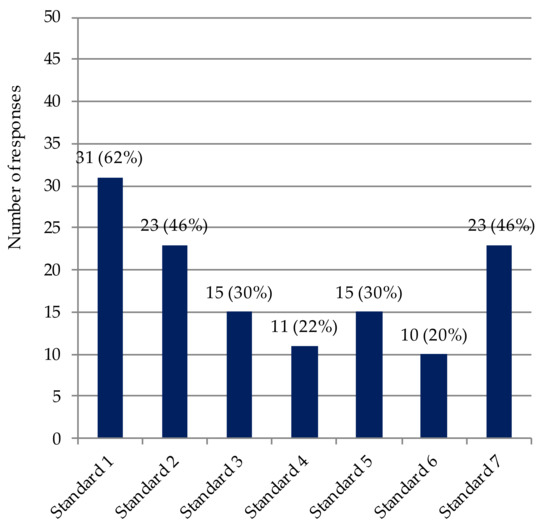 Altogether, 50 forestry enterprises had SGEC certification (including the three who also had FSC certification) and they reported improvements in the SGEC standards (Figure 2). About 60% of the enterprises reported improvement in Standard 1 (“identification of forests and management policies”), almost one-half included Standard 2 (“conservation of biological diversity”) or Standard 7 (“monitoring and disclosure of information”), and about 30% of the enterprises listed Standard 3 (“conservation and maintenance of soil and water resources”) or Standard 5 (“legal and institutional framework for sustainable forest management”). Few respondents reported improvements on Standard 4 (“maintenance of productivity and health of forest ecosystem”) or Standard 6 (“maintenance and promotion of social and economic benefits”).