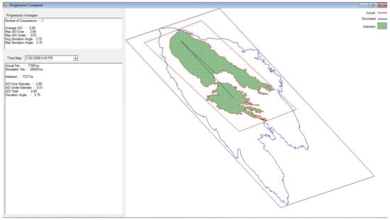 - Fujioka, F.M. A new method for the analysis of fire spread modeling errors. Int. J. Wildland Fire 2002, 11, 193–203. [Google Scholar] [CrossRef]