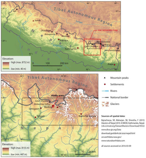- Zurick, D.; Pacheco, J. Illustrated Atlas of the Himalaya; University Press of Kentucky: Lexington, KY, USA, 2006; ISBN 978-0-8131-2388-2. [Google Scholar]