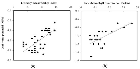 Table 1). There were, however, no statistical relationships observed between the February urban visual vitality index and midday leaf water potential in