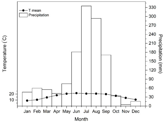 Climate diagram showing monthly mean temperature (1978–2016) and precipitation (1972–2016) records in Dadeldhura, western Nepal.