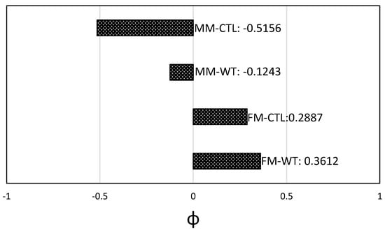 The overall ranking results of the four alternative thinning operations showed a robust preference for both FM alternatives (Figure 2). The difference in the overall preference value ϕ between FM-WT (0.3612) and FM-CLT (0.2887) was relatively small, while MM alternatives showed both negative overall preference values with MM-CLT (−0.5156) having a much larger preference than MM-WT (−0.1343) (Figure 2).