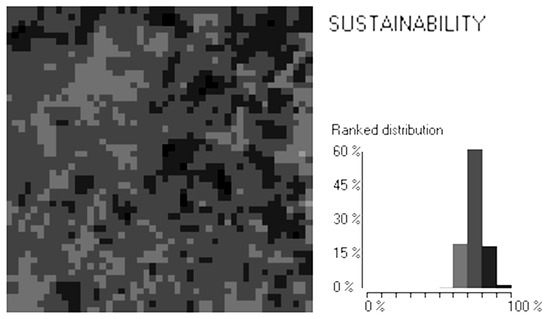 To get an aggregated assessment of sustainability without interactions, the joint value was calculated as the average of the individual sustainability for all the participants. We proceeded this way because it was the simplest method of aggregation. In general, there will be a different aggregate assessment, but this does not affect our objective: to see how interactions modify the aggregation of preferences. For this case study, ug = (0.71, 0.51, 0.58, 0.47, 0.24, 0.39).