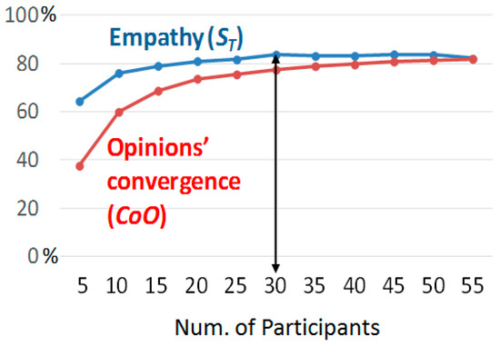 The average of Equation (5) for all possible participant pairs has been used as a measure of the percentage of empathy among participants:
