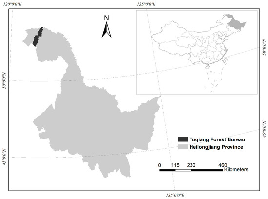 Location of the Tuqiang Forest Bureau study site in Heilongjiang province, China.