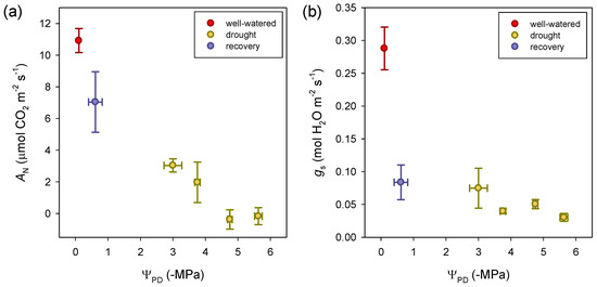 - Yan, W.; Zheng, S.; Zhong, Y.; Shangguan, Z. Contrasting dynamics of leaf potential and gas exchange during progressive drought cycles and recovery in Amorpha fruticosa and Robinia pseudoacacia. Sci. Rep. 2017, 7, 4470. [Google Scholar] [CrossRef] [PubMed]