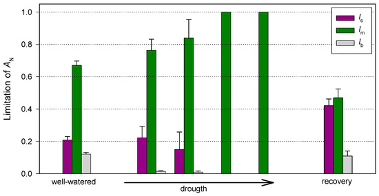 - Grassi, G.; Magnani, F. Stomatal, mesophyll conductance and biochemical limitations to photosynthesis as affected by drought and leaf ontogeny in ash and oak trees. Plant Cell Environ. 2005, 28, 834–849. [Google Scholar] [CrossRef]
