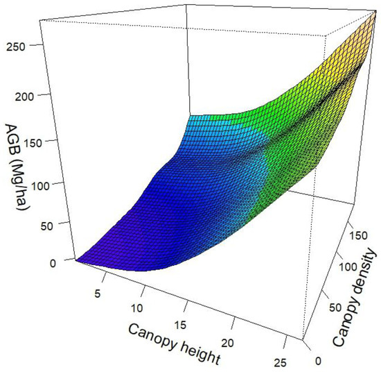 Effect for each factor on AGB by the generalized additive model (GAM). Canopy height (the 95th percentile height for all returns above 2 m), and canopy density (All returns above 3 m × 100/first returns) are metrics derived from LiDAR.