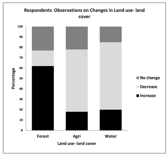 Mapping of land use patterns and ES over the last 20 years suggests that changes in both land use and land cover have occurred. More than 60% of the respondents identified that forest area had increased during this period, whilst agriculture and water resources had decreased (Figure 6).