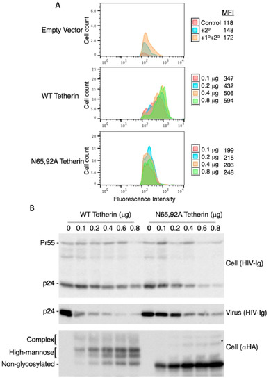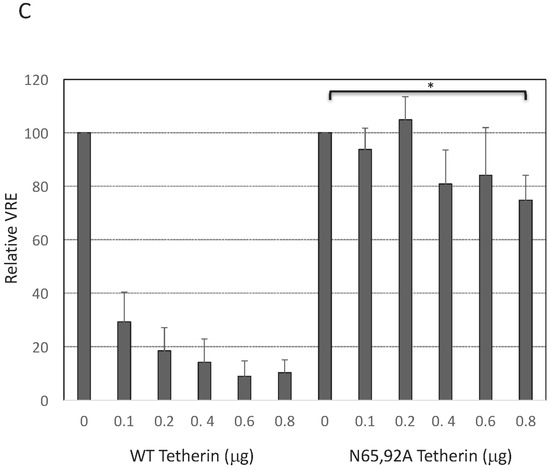3.3. Lack of Virus Release Inhibition by N65,92A Tetherin is Linked to Impaired Cell Surface Expression