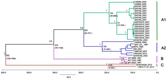 3.5. Time-Scaled Evolutionary Analysis of BAVs