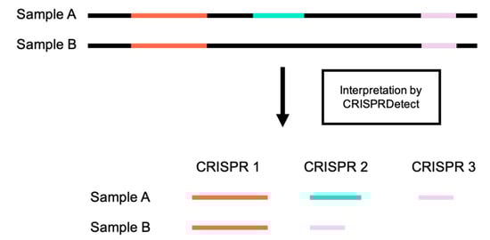 CRISPR loci misnumbering. CRISPR loci are given inconsistent numbers by CRISPRDetect in the cases where sequences from two samples do not contain all of the same CRISPR loci.