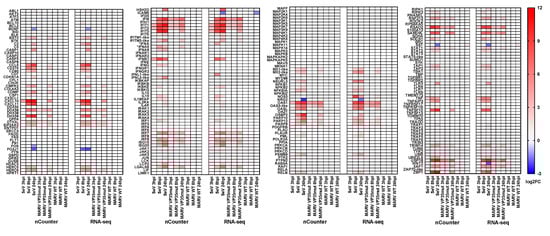 3.1. Differential Gene Expression for the nCounter CodeSet Strongly Correlates to RNA-Seq