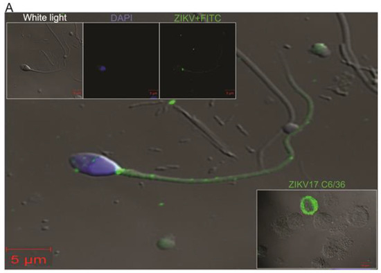 Reports have shown that ZIKV RNA is present in several body fluids, including urine, blood, saliva, breast milk and secretions from the vaginal tract [7,8,9,10], being cleared early from serum but still detected in whole blood, saliva and urine for more than two weeks after symptoms onset [11,12,13,14]. ZIKV can also replicate and persist in the male reproductive system and ZIKV RNA has been detected within semen for up to 6 months after initial infection in the male reproductive system (MRS) [15,16]. The potential for persistent ZIKV infections in the MRS raises concerns ranging from the demonstrated sexual transmission of the virus to the damage of germ cells and generation of poor-quality sperm. In fact, ZIKV infection has been shown to cause infertility in mice [17,18]. In addition, since the ZIKV genome is RNA-based, the occurrence of spontaneous mutations may lead to the accumulation of genetic variants during persistent infection, particularly at the MRS, with unpredicted outcomes for the virus–host interactions.