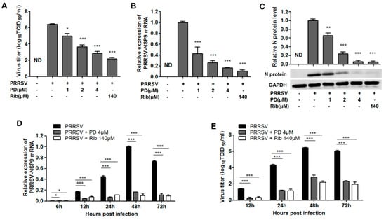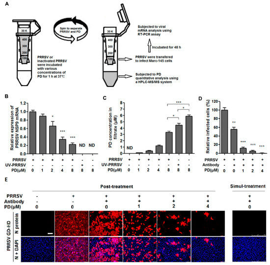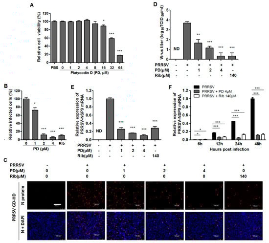 3.1. PD Inhibits PRRSV Infection in MARC-145 Cells