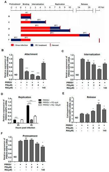 3.3. PD Blocks Attachment and Internalization of PRRSV