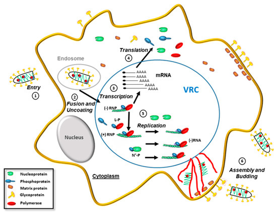 - Albertini, A.A.V.; Ruigrok, R.W.H.; Blondel, D. Chapter 1—Rabies Virus Transcription and Replication. In Advances in Virus Research; Jackson, A.C., Ed.; Research Advances in Rabies; Academic Press: Amsterdam, The Netherlands, 2011; Volume 79, pp. 1–22. [Google Scholar]