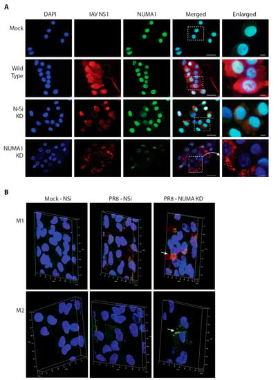 3.9. Localization of NUMA1 and Viral NS1, M1 and M2 Proteins in NUMA1-Deficient Cells