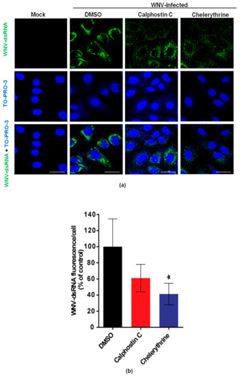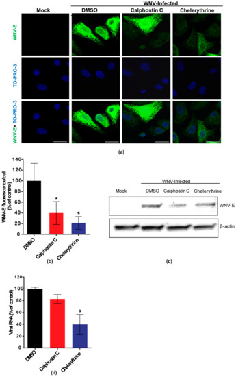 3.2. Chelerythrine Inhibition Reduces WNV Infection at a Replication Step