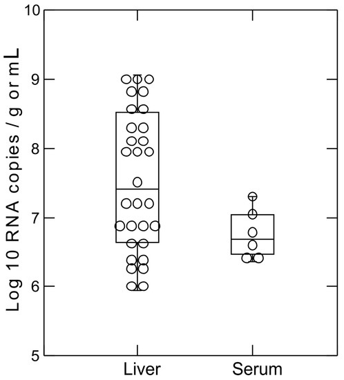 Box plot of rodent hepacivirus RNA concentration with each dot representing one sample.