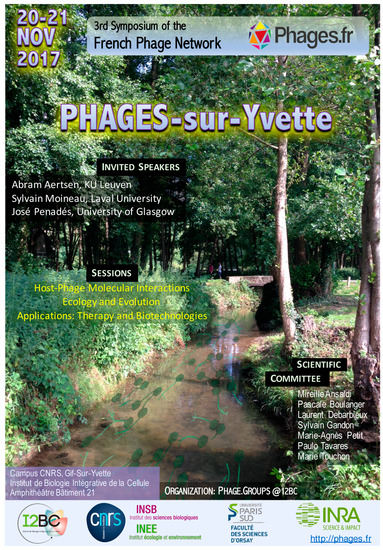The third meeting of the French Phage Network (Phages-sur-Yvette) was supported by I2BC, CNRS (INEE and INSB institutes), INRA, University Paris-Sud, and Orsay Faculty of Sciences. We thank all the authors that contributed to this meeting.