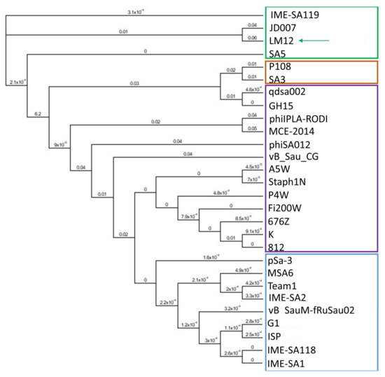 3.1. LM12 Is a New S. aureus-Infecting Phage