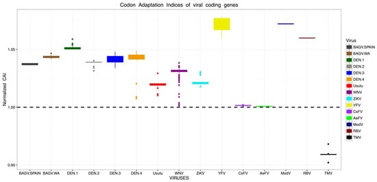 In addition, the highest CAIs of YFV and DENV could be related to their long histories of infection in humans []. Indeed, YFV and DENV are maintained in endemic and sylvatic cycles, which conducted to repeated epidemics for more than one hundred years. However, YFV showed generally a higher virulence in human infections, particularly when it is compared to DENV infections reported in Africa []. This could explain the higher CAI values of YFV towards codon usage of the human housekeeping genes.