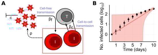Figure 3A). Thus, the previously assumed proportionality between successful cell-to-cell transmissions and the concentration of infected cells (Equation (