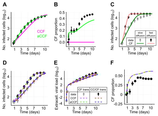 Figure 6F), both models slightly overestimate the proportion of cells infected by cell-free virus, although capturing the general dynamics (