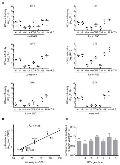3.5. The Seven HCV Genotypes Depend Similarly on the hCD81 Backbone