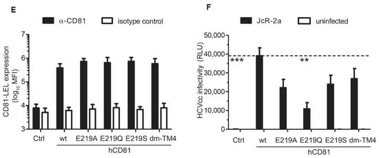 3.6. The hCD81 Glutamate Residue 219 Contributes to HCV Susceptibility
