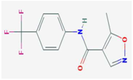 | Mizoribine | IMPDH, GMP synthetase | [32] | ![]() | Leflunomide Teriflunomide | DHODH | [35,36] | ![]() | ||