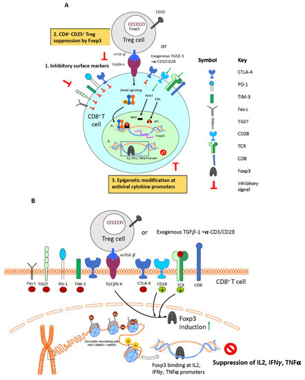 - Pion, M.; Jaramillo-Ruiz, D.; Martinez, A.; Munoz-Fernandez, M.A.; Correa-Rocha, R. HIV infection of human regulatory T cells downregulates Foxp3 expression by increasing DNMT3b levels and DNA methylation in the FOXP3 gene. AIDS 2013, 27, 2019–2029. [Google Scholar] [CrossRef] [PubMed]