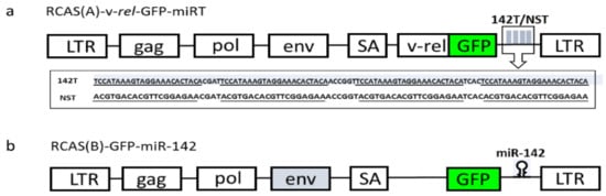 - Yao, Y.; Vasoya, D.; Kgosana, L.; Smith, L.P.; Gao, Y.; Wang, X.; Watson, M.; Nair, V. Activation of gga-miR-155 by reticuloendotheliosis virus T strain and its contribution to transformation. J. Gen. Virol. 2017, 98, 810–820. [Google Scholar] [CrossRef] [PubMed]