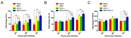 Chicago/Turabian StyleZhou, Jing, Guo-Liang Zhao, Xiao-Man Wang, Xu-Sheng Du, Shuai Su, Chen-Gui Li, Venugopal Nair, Yong-Xiu Yao, and Zi-Qiang Cheng. 2018. "Synergistic Viral Replication of Marek’s Disease Virus and Avian Leukosis Virus Subgroup J is Responsible for the Enhanced Pathogenicity in the Superinfection of Chickens" Viruses 10, no. 5: 271. https://doi.org/10.3390/v10050271