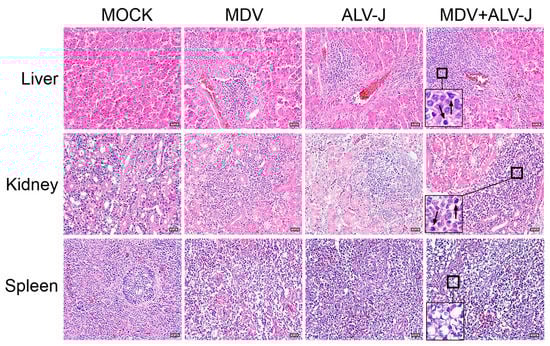 - Wen, Y.; Huang, Q.; Yang, C.; Pan, L.; Wang, G.; Qi, K.; Liu, H. Characterizing the histopathology of natural co-infection with Marek’s disease virus and subgroup J avian leukosis virus in egg-laying hens. Avian Pathol. 2018, 47, 83–89. [Google Scholar] [CrossRef] [PubMed]