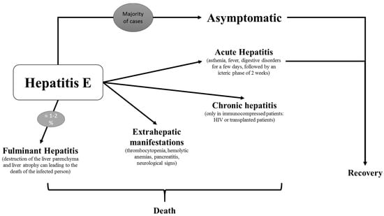 The course and clinical presentation of HEV infection is highly variable (Figure 3); the mechanisms leading to the different clinical outcomes are only partially understood [,,,].
